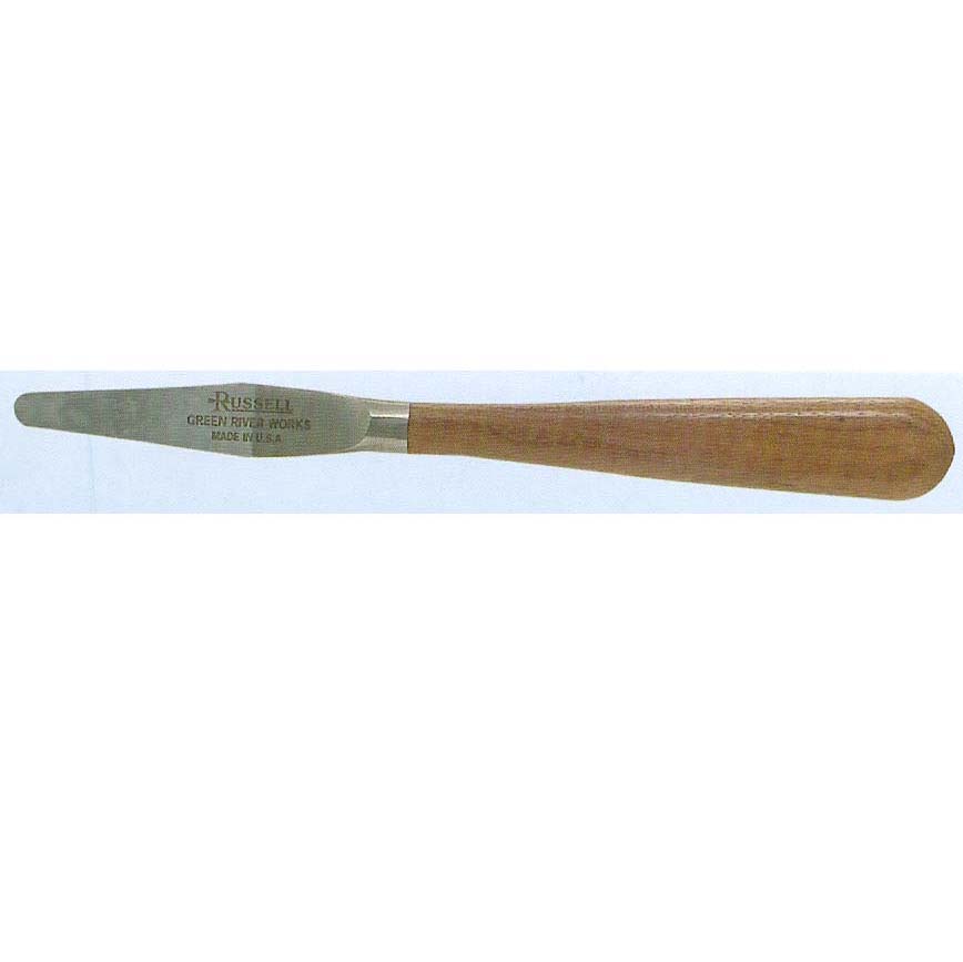 Spatule avec manche en bois, elle sert à appliquer la cire restaurative.